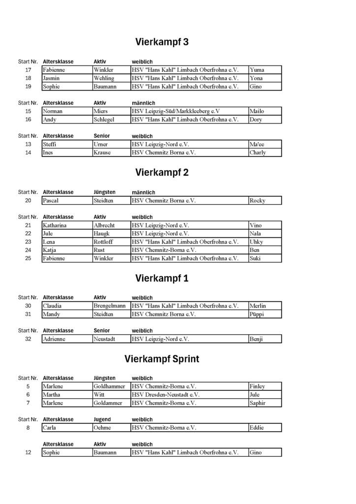13.45 Uhr | Gruppe 3 Hürden/ Slalom/ Hindernis VK 2 ( 6 Teams) | 20,21,22,23,24,25 |