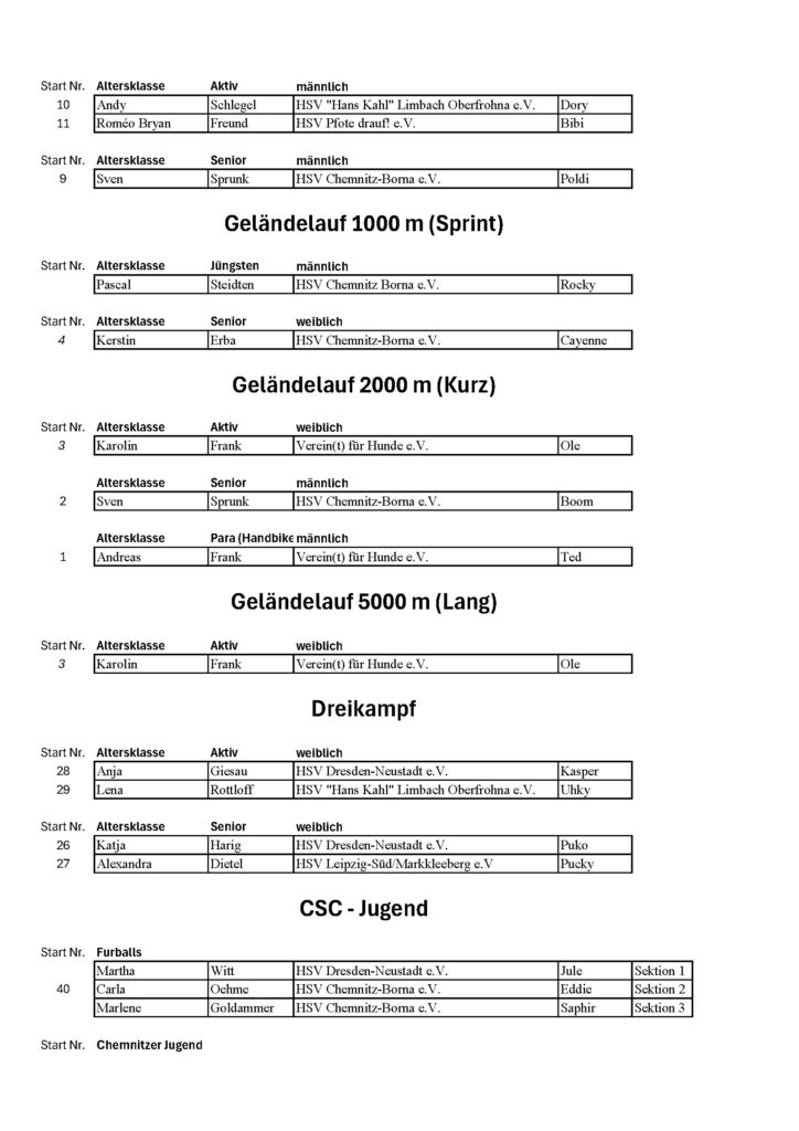 Uhrzeit | Ablauf / Aufgabe | Start Nr. |