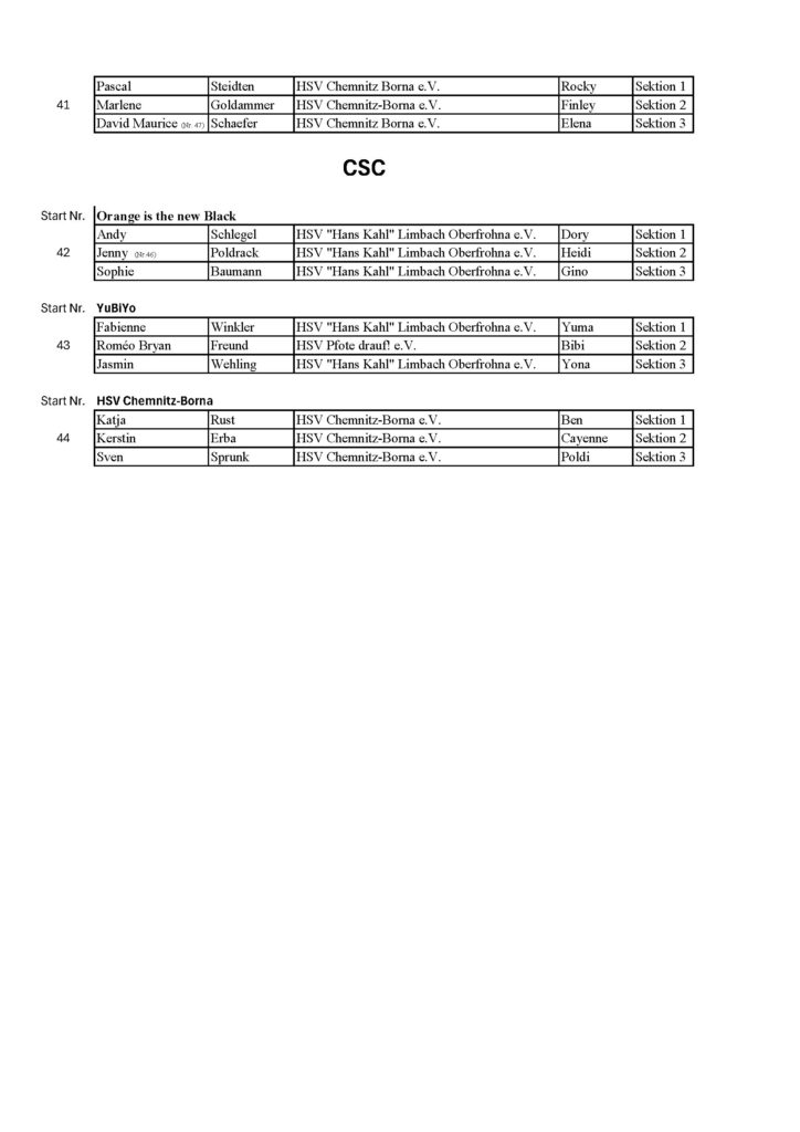15.15 Uhr | CSC Jugend (2 Teams)und CSC Erwachsene ( 3 Teams) | 40,41,42,43,44 |